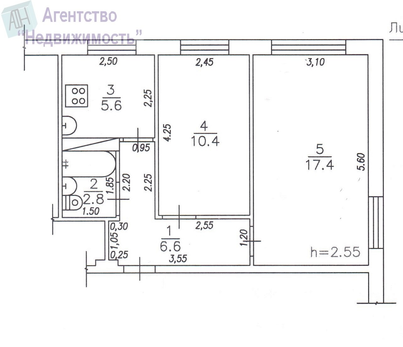 Квартира обладает жилой площадью 27,8 кв.м и функциональной планировкой, которая включает в себя две раздельные комнаты с площадью 10,4 кв.м, 17,4 кв.м, совмещенные ванна и туалет (2,8 кв.м), в коридоре имеется ниша для холодильника. Квартира очень светлая и теплая, дом расположен не у дороги, шум от транспорта и пыль не будут вас беспокоить.
