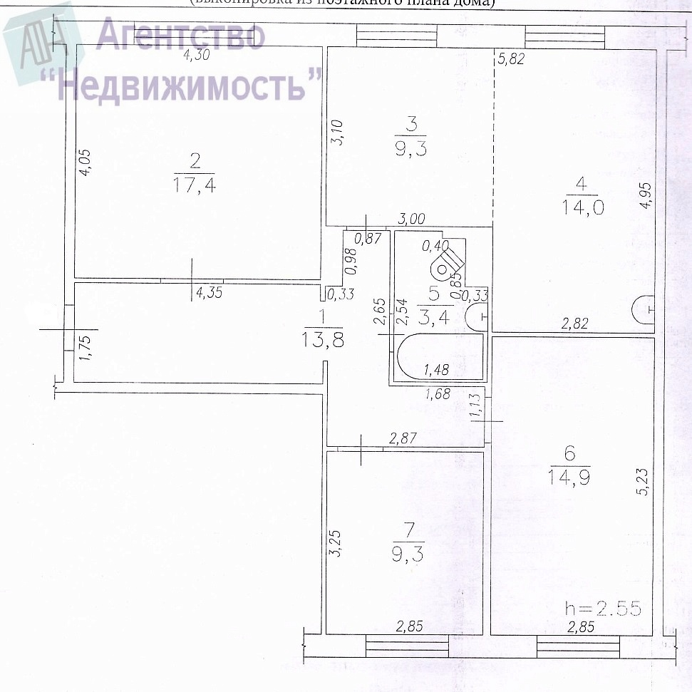 трех жилых комнат площадью 17,4 кв.м, 14,9 кв.м, 9,3 кв.м;